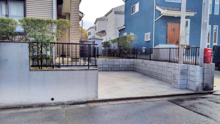 既存の駐車スペースとは別に新しく駐車場を設けたい!というご要望でしたので 1)お庭部分を駐車スペースに変更 2)上記工事に伴い既存電柱の移設 3)新規ブロック及びフェンスの設置 をご提案いたしました。 |