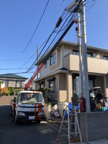 敷地内の既存電柱を移設しています